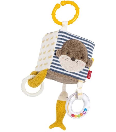 Der Activity-Würfel Otter Theo von Fehn lädt Dein Baby zum Spielen, Entdecken, Greifen und Tasten ein. Activity-Würfel Otter Theo von Fehn C-Ring zur Befestigung mit Glocke, Rasselring, Beißelement, Spiegel, Greifring, Knisterpapier aus Textil, Handwäsche ab Geburt geeignet Der Activity-Würfel Otter Theo von Fehn sorgt überall für großen Spaß: Dein Kind kann das Motorikspielzeug zu Hause oder unterwegs erkunden. Der praktische C-Ring lässt sich einfach am Bett, dem Laufgitter, einem Kinderwagen oder einer Babyschale befestigen. Um die Aufmerksamkeit Deines Kleinen auf sich zu ziehen, verfügt der Würfel über eine Glocke in seinem Inneren. Eine Perlen-Rassel, Knisterpapier, ein Greifring und ein Beißelement bieten Deinem Nachwuchs verschiedene motorische Herausforderungen. Der Spiegel lädt Dein Kleines dazu ein, sich selbst zu betrachten und seine Ich-Wahrnehmung zu schulen. ...
