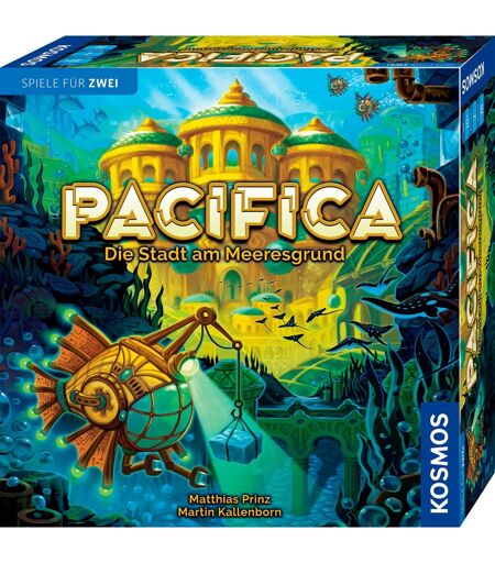 Pacifica ist ein Spiel für zwei, das strategisches Denken und ein glückliches Händchen erfordert. Jeder startet mit einer Hälfte der versunkenen Unterwasserstadt Pacifica. Nun werden Kunstschätze gesammelt und Erfindungen vorangetrieben. Wer in einer Disziplin die Oberhand behält, gewinnt ein Idol. Wer ist am schnellsten beim Aufbau seiner Stadt und hat auch das nötige Glück? ...