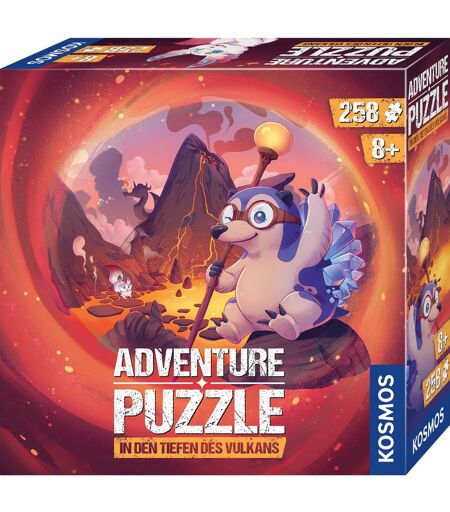 In dieser Höhle glüht und zischt es! Die kleine Füchsin Jara braucht Hilfe: Ihre Freunde sind in Gefahr! Die Rettung liegt in dieser Landschaft aus Lava und Gestein. Wer ist bereit für spannende Herausforderungen? Erst die Abenteuergeschichte lesen oder in der KOSMOS Erklär-App vorlesen lassen und dann das Puzzlebild Abschnitt für Abschnitt aus 258 Teilen zusammenlegen. Kinder ab acht Jahren entdecken in diesem interaktiven Point & Click-Abenteuer neue Orte auf dem Bild. Sie lösen Aufgaben, finden Gegenstände und bringen so die Geschichte voran. Einige Puzzleteile haben eine besondere Auswirkung und erhöhen den Spannungsfaktor: Sie lassen Lava fließen und so den Vulkan ausbrechen. ...