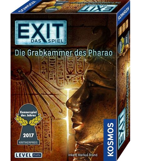 Während eines Ägypten-Urlaubs besuchen die Spieler das Highlight ihres Aufenthalts – die steinernen Pyramiden! Doch als sie durch die engen, labyrinthartigen Gänge steigen, verlieren sie schnell den Rest der Gruppe. Nach langem Umherirren gelangen die Spieler schließlich in eine mysteriöse Grabkammer. Plötzlich schließt sich die Steintür hinter ihnen. Die Spieler sind gefangen. Auf dem Boden liegt ein halb mit Sand verdecktes Notizbuch sowie eine uralte Drehscheibe. Werden die Spieler rechtzeitig entkommen oder für immer unter Stein begraben sein? Bei „EXIT – Das Spiel“ entdecken die Spieler mit etwas Kombinationsgabe, Teamgeist und Kreativität nach und nach immer mehr Gegenstände, knacken Codes, lösen Rätsel und kommen der Freiheit Stück für Stück näher. Dabei müssen auch ungewöhnliche Wege beschritten werden. So darf das Material geknickt, beschriftet oder zerrissen werden. Ist das Geheimnis des Raumes einmal gelüftet, kann das Event-Spiel kein zweites Mal gespielt werden. Das macht den Spieleabend zu einem besonderen Highlight. Live-Escape-Feeling im Profi-Level. Für 1 – 4 Spieler ab 12 Jahren. Der atmosphärische Nervenkitzel für zu Hause. ...