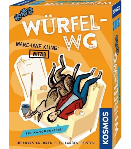 Im Spiel „Würfel-WG“ werden neue Mitbewohner gesucht, die Ordnung ins Chaos bringen. Auch das Känguru von Erfolgsautor Marc-Uwe Kling ist dabei. Die Spieler würfeln, um neue WG-Mitglieder anzuwerben. Diese bringen weitere Würfel mit und helfen, punktebringende Aktivitäten zu starten. Dabei nützt das Würfelergebnis nicht nur dem Teilnehmer, der gerade spielt, sondern auch allen Mitspielern. Gewinner ist der glückliche Besitzer der Hängematte, die vergeben wird, sobald ein Spieler mindestens 14 Punkte gesammelt hat. ...