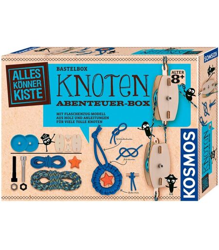 Lustige Knoten-Knobelei mit Überraschungsmoment! Palstek, Kreuzknoten und Co. - mit diesem coolen Bastelset lernen Kinder ab acht Jahren Schritt für Schritt die wichtigsten Knoten, die man fürs Leben braucht. Überraschung: Für das "Meisterstück", einen selbstgeknüpften Schlüsselanhänger, können die neu erlernten Tricks gleich angewendet werden. Als besonderes Highlight enthält der Kasten ein tolles Flaschenzug-Modell aus Holz. So können die frisch gebackenen Knoten-Profis gleich noch ausprobieren, wie man mit wenig Kraft Dinge nach oben befördern kann. ...