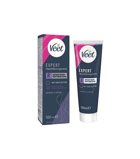 Veet Expert Enthaarungscreme 100 ml – glatte Haut für Körper und Beine Die Veet Expert Enthaarungscreme entfernt Haare zuverlässig und sorgt für ein langanhaltendes Glättegefühl. Schon nach 2 Minuten Einwirkzeit wirkt sie effektiv – speziell für Frauen entwickelt, geeignet für alle Haut- und Haartypen, mit 48 Stunden Feuchtigkeitspflege.Sanft und pflegend Die hautfreundliche Formel wirkt schnell, entfernt Haare ohne die Haut zu reizen und hinterlässt ein geschmeidig glattes Hautgefühl. Einfach in der Anwendung Die Creme gleichmäßig auf die gewünschten Körperbereiche auftragen, 2 Minuten einwirken lassen und anschließend mit dem beiliegenden Spatel entfernen. Für glatte Beine und Körperstellen ohne Stoppeln oder Rasurbrand. Mit der Veet Expert Enthaarungscreme 100 ml genießen Frauen eine schnelle, einfache und pflegende Haarentfernung für den ganzen Körper – samtig weiche Haut inklusive! ...