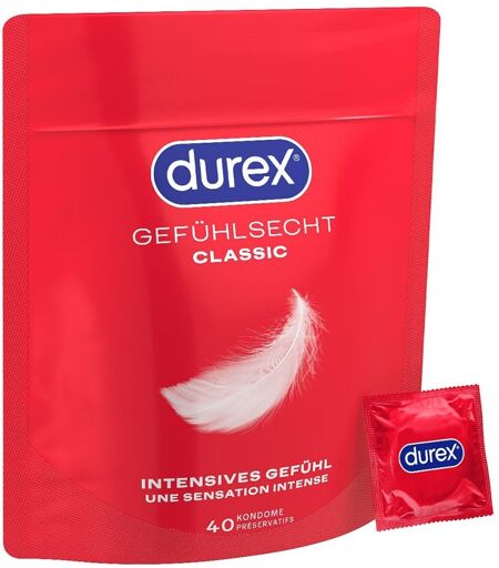 Anwendungsgebiet von Durex Gefühlsecht classic KondomeDurex Gefühlsecht classic Kondome - die meistgekauften Kondome in Deutschland erstrahlen jetzt im neuen Verpackungsdesign und verleihen ein intesives Gefühl.