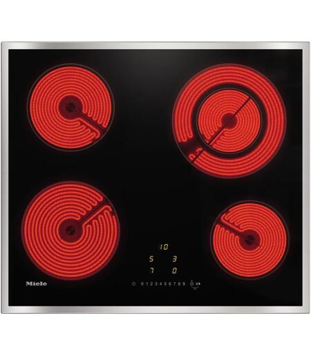 Das Miele-Plus: Einfache Bedienung - EasySelect: ; Ansprechendes Design - 574 mm breit mit umlaufendem Rahmen: ; Besonders flexibel: - 4 Kochzonen inkl. 1 Vario-Zone; Komfortabel - Ankochautomatik : für jede Kochzone; Sicher - dreistufige Restwärmeanzeige: für jede Kochzone; Leistungseigenschaften4 Kochzone(n); Energieverbrauch der Kochmulde 186,2 Wh/kg; Gesamt-Leistungsaufnahme: 6,7 kW; 3x16 A Absicherung; 220-240V 50/60Hz Netzanschluss; AusstattungAnkochautomatik; Sicherheitsabschaltung; Funktionssperre; Einschaltsperre; Abschaltautomatik; Stopp-Funktion; Fehlerüberwachung; Glas-Schaber; BedienungBedienfeld vorne; Sensor-Tasten; Countdown-Timer/Kurzzeitwecker; Restwärmeanzeige; Restwärmeausnutzung; Digital-Anzeige für Kochstufen; Restart-Funktion; Kochzone-vorne/außen linksHiLight-Kochzone vorne links; Durchmesser der Kochzone: 18 cm; Heizleistung: 1800 W; Energieverbrauch 190,9 Wh/kg; stufenweise regelbar vorne links; 9 Heizstufen; Kochzone-hinten/innen linksHiLight-Kochzone hinten links; Durchmesser der Kochzone: 16 cm; Heizleistung: 1500 W; Energieverbrauch 175,9 Wh/kg; stufenweise regelbar hinten links; 9 Heizstufen; Kochzone-hinten/innen rechtsHiLight-Kochzone hinten rechts; Zweikreis-Kochzone hinten rechts; Durchmesser der kleinen Kochzone: 12 cm; Durchmesser der großen Kochzone: 21 cm; Heizleistung der kleinen Kochzone: 750 W; Heizleistung der großen Kochzone: 2200 W; Energieverbrauch 187,7 Wh/kg; stufenweise regelbar hinten rechts; 9 Heizstufen; Kochzone-vorne/außen rechtsHiLight-Kochzone vorne rechts; Durchmesser der Kochzone: 14,5 cm; Heizleistung: 1200 W; Energieverbrauch 190,2 Wh/kg; stufenweise regelbar vorne rechts; 9 Heizstufen; Gehäuse-EigenschaftenBreite: 57,4 cm; Tiefe: 50,4 cm; Höhe: 4,2 cm; Länge der Anschlussleitung: 1,44 m; Einbau-EigenschaftenBreite, Ausschnitt: 56 cm; Tiefe, Ausschnitt: 49 cm; VerpackungsangabenHöhe mit Verpackung/Kochfeld: 12,2 cm; Tiefe mit Verpackung/Kochfeld: 60 cm; Farbenedelstahl; ...