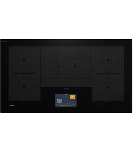Das Miele-Plus: Intelligente Bedienung dank Touch-Display; Flexible Kochbereiche für bis zu 5 Kochgeschirre; Mit 8 TempControl Sensoren; In 936 mm Breite für flächenbündigen oder aufliegenden Einbau; Kommunikation mit der Haube - Automatikfunktion Con@ctivity; Leistungseigenschaften Gesamt-Leistungsaufnahme: 10,35 kW; 5 Kochzonen; Energieverbrauch der Kochmulde 190,9 Wh/kg; 220-240V 50/60Hz Netzanschluss; Ausstattung automatische Temperaturregelung; Topferkennungssensor für jede Kochzone; Topf-Positions-Erkennung; Temperatursensor; Sicherheitsabschaltung; Überhitzungsschutz; Funktionssperre; Abschaltautomatik; Stopp-Funktion; Kühlventilator; Steuerung für Dunstabzugshaube; Systemsteuerung möglich; optionale Smart Home Funktion; Bedienung TFT-Display; Bedienfeld vorne; Sensor-Tasten; Countdown-Timer/Kurzzeitwecker; Restwärmeanzeige für jede Kochzone; Kochzone-vorne/außen links Induktions-Kochzone vorne links; stufenlos variierbares Kochzonen-Format vorne links; autom. Topfdurchmesser-Erkennung; Energieverbrauch 191,9 Wh/kg; Kochzone-hinten/innen links Induktions-Kochzone hinten links; stufenlos variierbares Kochzonen-Format hinten links; autom. Topfdurchmesser-Erkennung; Kochzone-hinten/innen rechts Induktions-Kochzone hinten rechts; stufenlos variierbares Kochzonen-Format hinten rechts; autom. Topfdurchmesser-Erkennung; Kochzone-vorne/außen rechts Induktions-Kochzone vorne rechts; stufenlos variierbares Kochzonen-Format vorne rechts; autom. Topfdurchmesser-Erkennung; Energieverbrauch 191,7 Wh/kg; 5. Kochstelle Induktions-Kochzone 5. Kochstelle; stufenlos variierbares Kochzonen-Format 5. Kochstelle; autom. Topfdurchmesser-Erkennung; Energieverbrauch 189 Wh/kg; Gehäuse-Eigenschaften Breite: 93,6 cm; Tiefe: 52 cm; Höhe: 6,7 cm; Gewicht: 22 kg; rahmenlose Kochfläche; Länge der Anschlussleitung: 1,3 m; Einbau-Eigenschaften Breite, Ausschnitt: 91,6 cm; Tiefe, Ausschnitt: 50 cm; Farben schwarz; ...