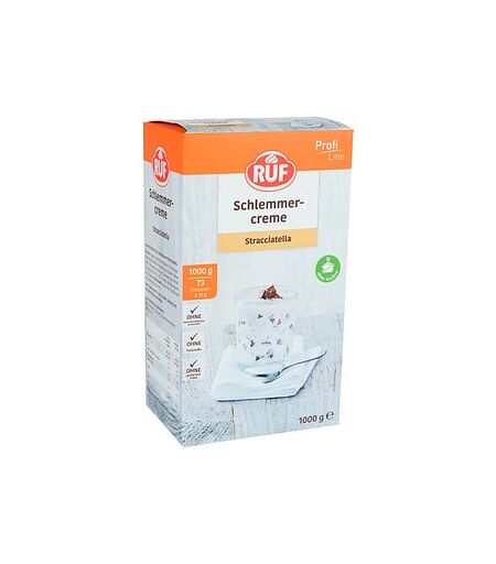 RUF Schlemmercreme Stracciatella – cremiger Dessertklassiker mit Schokoladenstückchen Feine Vanillecreme mit knackigen Schokosplits. Die RUF Schlemmercreme Stracciatella kombiniert eine zart-vanillige Creme mit feinen Schokoladenstückchen – für ein Dessert, das bei Groß und Klein gut ankommt. Die luftige Konsistenz und der klassische Geschmack machen sie zur idealen Nachspeise für Buffets, Feiern oder die schnelle Küche.Einfache Zubereitung, köstliches ErgebnisDie Creme ist in wenigen Minuten servierfertig: einfach mit kalter Milch aufschlagen, kurz ruhen lassen – und fertig ist ein cremig-knackiger Nachtisch. Perfekt zum Direktverzehr oder als Basis für Schichtdesserts mit Früchten, Waffeln oder Sahne.Ideal für große MengenOb in der Gastronomie, bei Veranstaltungen oder für die ganze Familie – mit der ergiebigen 1-kg-Packung lassen sich viele Portionen zubereiten. Die Creme bleibt dabei stabil, cremig und geschmacklich ausgewogen – auch bei längerer Kühlzeit.Jetzt RUF Schlemmercreme Stracciatella 1,0 kg kaufen und cremigen Vanillegenuss mit feiner Schokoladennote ganz einfach selbst zubereiten! ...