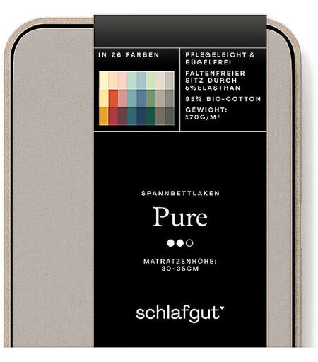 Dehnbar, blickdicht und straff: Unser Pure Spannbettlaken aus fließender Bio-Makobaumwolle und 5% Elasthan lässt sich einfach beziehen und bleibt schön faltenfrei – auch nach dem Schlafen. Und ganz gleich in welcher Farbe, es ist Made in Green – sagt auch Oeko-Tex®. Material: 95 % gekämmte Bio-Baumwolle und 5 % Elasthan - gleichmäßige, blickdichte Oberfläche und straffer, faltenfreier Sitz 5 % Elasthan - passt auch 220cm lange Matratzen Reaktivfärbung bis tief in die Faser - farbecht auch nach vielen Waschgängen mit Antipilling-Ausrüstung - keine Fusseln original Fulflex-Gummi - bleibt in Form pflegeleicht - trocknergeeignet und bügelfrei mittelschwere Qualität - Flächengewicht: ca. 170g / m2 »Made in Green« by OEKO-TEX® - schadstoffrei und umweltfreundlich Carefully designed in Germany Maximale Matratzenhöhe: bis 30 cm S - Passend für 90x190cm bis 100x220cm. ...