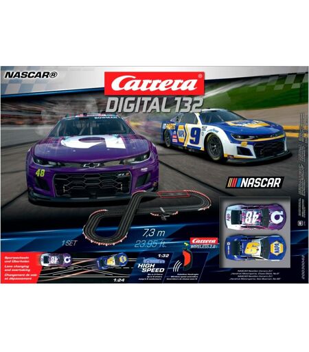 Starte deine Motoren für die ultimative Carrera DIGITAL 132 NASCAR Daytona Challenge! Mit einer beeindruckenden Streckenlänge von 7,3 Metern bietet dieses Slotracing-Set spannende Rennerlebnisse für bis zu 6 Fahrer. Steuere den NASCAR Camaro NextGen ZL1 "Hendrick Motorsports, Chase Elliott, No.9" oder den NASCAR Camaro NextGen ZL1 "Hendrick Motorsports, Alex Bowman, No.48" für packende Duelle auf der Überholspur. Die innovative Spurwechsel-Funktion erlaubt atemberaubende Manöver, während die Wireless Controller die Freiheit geben, das Rennen aus jeder Perspektive zu dominieren. Mit der Carrera-Rennbahn DIGITAL 132 NASCAR Daytona Challenge bist du nicht nur Zuschauer, sondern Teil des Nervenkitzels! ...