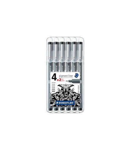 STAEDTLER pigment liner 308 Fineliner schwarz 0,05 + 0,1 + 0,3 + 0,5 + 0,8 mm, 6 St.