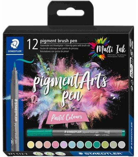 STAEDTLER Schreib- und Zeichbedarf pigment brush Fasermaler Pinselspitze, Pastel Colours, 12er Set