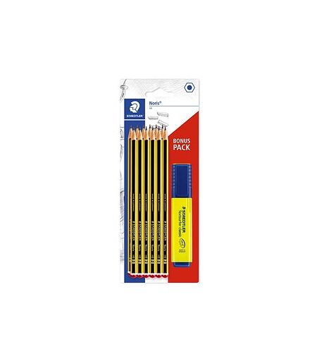 Die STAEDTLER Noris® Bleistifte HB schwarz/gelb, 1 Set – optimal zum Schreiben, Zeichnen und SkizzierenDie STAEDTLER Noris® Bleistifte HB schwarz/gelb, 1 Set sind ein unverzichtbarer Begleiter für Schule oder Beruf und zum Zeichnen, Skizzieren oder Schreiben ideal.Ergonomische SchaftformDer Artikel hat eine Sechskant-Form und liegt dadurch beim Schreiben und Zeichnen nicht nur sicher und bequem in der Hand, sondern rollt bei Nichtgebrauch auch garantiert nicht vom Tisch.Besonders bruchfest dank höchster MinenstabilitätStändig abgebrochene Spitzen sind ärgerlich. Dank der hohen Minenstabilität und Bruchfestigkeit gehört das aber von nun an der Vergangenheit an.Vielseitig einsetzbar dank mittlerem HärtegradDie Mine besitzt einen mittleren Härtegrad, sprich HB. Dadurch sind ihre Anwendungsbereiche äußerst breit gefächert. Die Bezeichnung "HB" für den mittleren Härtegrad kommt daher, dass H englisch "hard" und B "black" bedeutet. Da eine harte Minenvariante einen geringen Abrieb hat, erzeugt sie hellere, feinere Striche als weiche Modelle mit stärkerem Abrieb. Letztere werden daher mit "black" bezeichnet. "Hard-black"-Exemplare haben somit einen mittleren Abrieb.Passt dieser Artikel zu Ihren Bedürfnissen?Für eine gute Verarbeitung und Haltbarkeit spricht, dass es sich hier um ein Produkt "Made in Germany" handelt. Beim Kauf der STAEDTLER Noris® Bleistifte HB schwarz/gelb, 1 Set erhalten Sie Ihre Lieferung inklusive Textmarker Textsurfer classic 364-1. ...