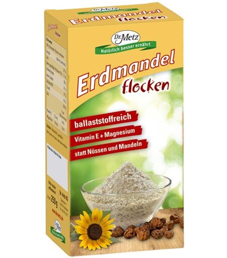 Anwendungsgebiet von Erdmandel FlockenErdmandel Flocken als Müsli oder in Joghurt, Quark oder mit Früchten fördern die Verdauung und sind reich an Ballaststoffen.