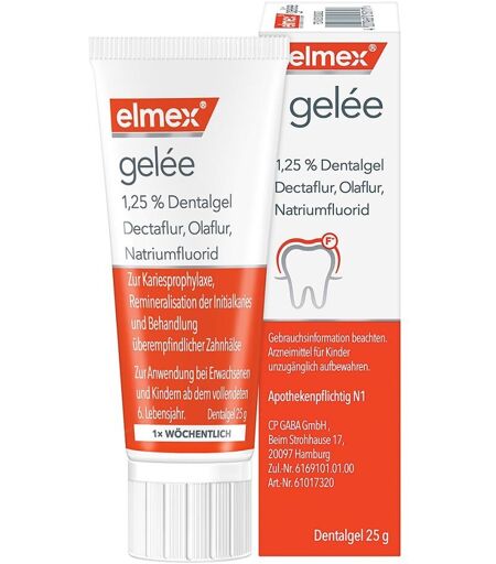 elmex® gelée baut den Zahn von innen heraus wieder auf, indem es verlorene Mineralien ergänzt und so beginnende Karies rückgängig macht. So eignet sich elmex® gelée zur Vorbeugung gegen Karies, zur Unterstützung der Behandlung von Initialkaries und Behandlung überempfindlicher Zahnhälse.