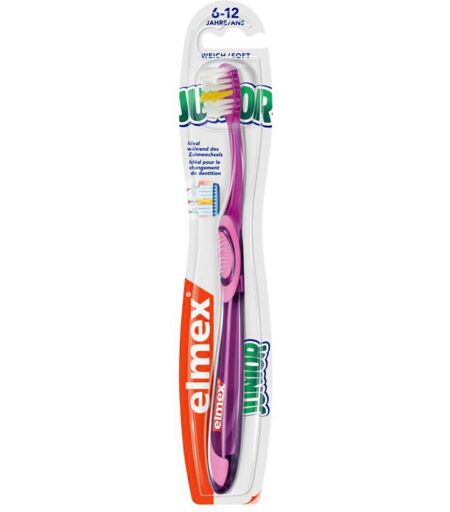 Anwendungsgebiet von Elmex Junior ZahnbürsteElmex Junior Zahnbürste ist eine Zahnbürste für Kinder im Alter von 6-12 Jahren.Wirkungsweise von Elmex Junior ZahnbürsteDie Elmex Junior Zahnbürste besitzt weiche, abgerundete Borsten, die gründlich reinigen und dabei das Zahnfleisch schonen. Sie ist optimal an die Bedürfnisse von Kinderzähnen angepasst und erleichtert das Zähneputzen während des Zahnwechsels. Spezielle X-Borsten ragen aus dem Borstenniveau hervor und ermöglichen eine zuverlässige Reinigung der Zahnzwischenräume. Zahnbelag wird gründlich entfernt, um der Entstehung von Karies entgegenzuwirken. Der ergonomisch geformte, rutschfeste Griff wurde an die Form von Kinderhänden angepasst und ermöglicht ein kontrolliertes, sicheres Zähneputzen.Wirkstoffe / Inhaltsstoffe / ZutatenElmex Junior Zahnbürste enthält: