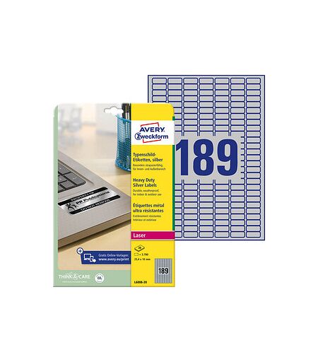 3.780 AVERY Zweckform Typenschildetiketten L6008-20 silber 25,4 x 10,0 mm