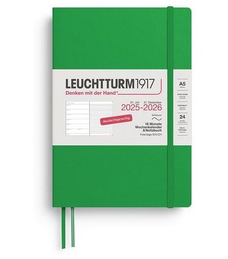 Leuchtturm1917 18 Monatskalender & Notizbuch 1 Woche auf 1 Seite 2026 Medium A5 Softcover Spring Leaf Liniert