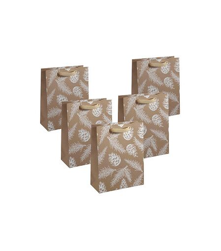 5 SIGEL Geschenktüten Pine cones and pine branches Large braun 26,0 x 33,0 cm