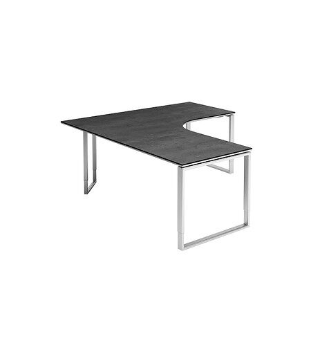 röhr Imperia höhenverstellbarer Schreibtisch quarzit L-Form, Kufen-Gestell silber 180,0 x 80,0/200,0 cm