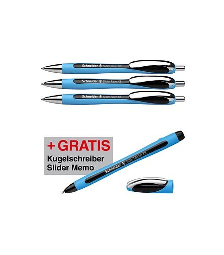 AKTION: Schneider Kugelschreiber Slider Rave XB blau, schwarz, Schreibfarbe: schwarz, 3 St. + GRATIS Schneider Kugelschreiber Slider Memo XB