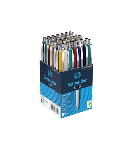 Schneider Kugelschreiber K15 farbsortiert, Schreibfarbe: blau, 50 St.