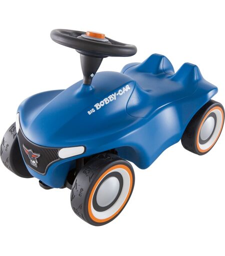 Facelift einer Legende - mit dem BIG-Bobby-Car Neo präsentiert BIG eine neue Generation seines Rutschfahrzeug-Klassikers, der schon viele Jahrgänge von Kindern begleitet und begeistert hat. Das revolutionäre, moderne Design stellt das Wappentier, den BIG-Büffel, ganz besonders heraus. So ist z.B. der hochwertig bedruckte Kühlergrill in Form des Büffels gehalten und die breiten Flüsterreifen verfügen über ein einzigartiges Büffel-Profil. Die blaue Variante mit orangen Details wirkt durch die Kombination der Farbtöne besonders frisch und modern. Das Chassis ist in neuer stylischer Form überarbeitet, die ergonomisch geformte Sitzfläche verfügt über eine Anti-Rutsch-Oberfläche. Das Kult-Auto verfügt nach wie vor über eine Sicherheits-Kniemulde und die Beinauflage. Die Rücklichter sind vormontierte Kunststoffteile in Form stilisierter Büffelhörner. Das leichtgängige Vollschalen-Sicherheitslenkrad sorgt für einen optimalen Griff und eine angenehme Haptik. Das BIG-Bobby-Car Neo wird serienmäßig mit extra breiten, hochwertigen und abriebfesten Weichkunststoff-Reifen geliefert, die für guten Grip sorgen und flüsterleise rollen. Des Weiteren verfügt die neue Version des kultigen Rutschautos über 3-teilige geschlossene Felgen, die besonders leicht zu reinigen sind. Das BIG-Bobby-Car Neo ist revolutionär in seiner Form und unschlagbar in Sachen Qualität. Hergestellt wird es aus umweltfreundlichem und strapazierfähigem Kunststoff im modernen BIG-Werk in Deutschland. ...