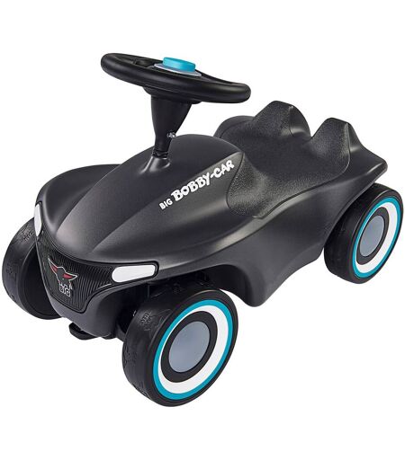 Facelift einer Legende - mit dem BIG-Bobby-Car Neo präsentiert BIG eine neue Generation seines Rutschfahrzeug-Klassikers, der schon viele Jahrgänge von Kindern begleitet und begeistert hat. BIG Bobby Car Neo ergonomische Sitzfläche mit Kniemulde mit Sicherheitslenkrad und Hupe hochwertige Flüsterreifen für Indoor & Outdoor belastbar bis 50kg ab 12 Monaten Das revolutionäre, moderne Design stellt das Wappentier, den BIG-Büffel, ganz besonders heraus. So ist z.B. der hochwertig bedruckte Kühlergrill in Form des Büffels gehalten und die breiten Flüsterreifen verfügen über ein einzigartiges Büffel-Profil. Das Chassis ist in neuer Form überarbeitet und verfügt über eine ergonomisch geformte Sitzfläche mit Anti-Rutsch-Oberfläche. Das Kult-Auto bietet kleinen Rennfahrern nach wie vor eine Sicherheits-Kniemulde und die Beinauflage. Die Rücklichter sind vormontierte Kunststoffteile in Form stilisierter Büffelhörner. Das leichtgängige Vollschalen-Sicherheitslenkrad sorgt für einen optimalen Griff und eine angenehme Haptik. Das BIG-Bobby-Car Neo wird serienmäßig mit extra breiten, hochwertigen und abriebfesten Weichkunststoff-Reifen geliefert, die für guten Grip sorgen und flüsterleise rollen. Des Weiteren verfügt die neue Version des kultigen Rutschautos über 3-teilige geschlossene Felgen, die besonders leicht zu reinigen sind. Eine abnehmbare Abschleppvorrichtung vorne unter dem Kühlergrill und eine Anhängerkupplung am Heck ermöglichen das Ankoppeln von BIG-Bobby-Car Zubehör, sowie die Nutzung aller gängigen BIG-Bobby-Car-Anhänger. Das BIG-Bobby-Car Neo ist revolutionär in seiner Form und unschlagbar in Sachen Qualität. Hergestellt wird es aus umweltfreundlichem und strapazierfähigem Kunststoff im modernen BIG-Werk in Deutschland. Die Variante in schickem Anthrazit verfügt über ein ganz besonderes Gimmick: Dem Rutschauto sind Felgenringe und Hupendeckel in 2 verschiedenen Farben beigelegt: Türkis und Pink. So kann das BIG-Bobby-Car ganz nach Geschmack immer wieder umgestaltet werden. ...