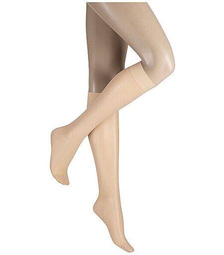 Transparente Kniestrümpfe mit atmungsaktiver Baumwoll-Sohle 20 Den Optik Atmungsaktive, hautfreundliche Baumwolle in Spitze Verstärkte Sohle und Ferse Druckfreier Komfortbund Styling-Tipp: Zur Stoffhose und eleganten Schnürschuhen sind die Kniestrümpfe die optimale Wahl. Farbbezeichnung: Teint Material: 75% Polyamid 19% Baumwolle 6% Elasthan ...
