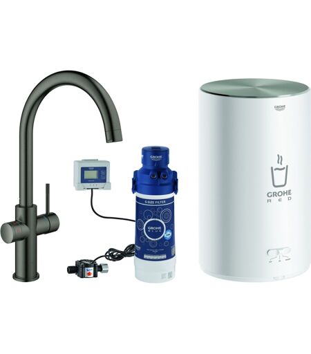 Grohe Armatur und Boiler Red Duo 30083 M-Size C-Auslauf hard graphite gebürstet, 30083AL1 30083AL1