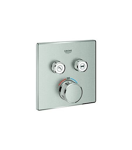 Grohe Grohtherm Smartcontrol Fertigmontageset 29124DC0 supersteel, eckig, UP-Thermostat, 2 Absperrventile