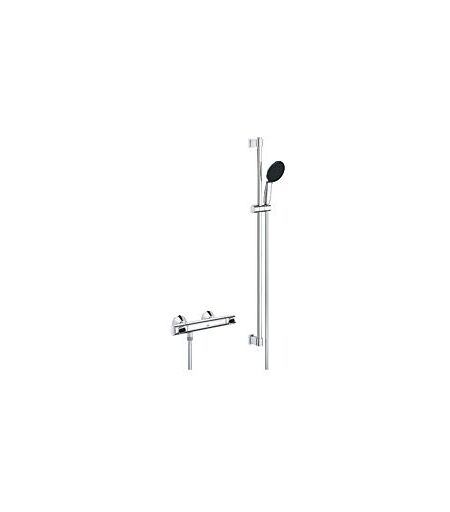 Grohe Precision Flow Brausethermostat 34805001mit Brausestangenset 1 Strahlart (Rain)bestehend aus:Precision Flow Thermostat-Brausebatterie 1/2“Vitalio Start 110 Brausestangenset, 900 mm (26 953)geeignet zum Bohren (Schrauben und Dübel beiliegend) oder Kleben (GROHE QuickGlue S 41 247 000 seperat erhältlich - 2 x erforderlich)Belastbarkeit der Brausestange: max. 20 kgDie angegebene Gewichtskraft gilt für eine statische (langsam aufgebrachte) Belastung und bestimmungsgemäßen GebrauchGROHE QuickSpanner beiliegend ...