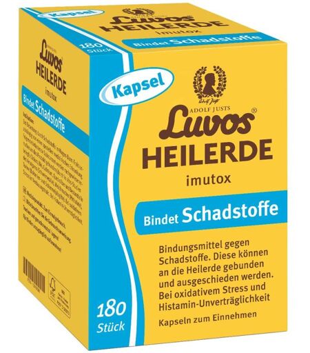 Anwendungsgebiet von Luvos Heilerde imutox KapselnLuvos Heilerde imutox Kapseln sind ein Medizinprodukt zur Unterstützung des Körpers bei der Entgiftung von innen und der Haut von außen. Sie bindet Schadstoffe und Umweltgifte, baut als mineralischer Katalysator freie Radikale ab. Empfohlen bei Detox- und Fastenkuren, für ganzheitliches Detoxen.Wirkungsweise von Luvos Heilerde imutox KapselnLuvos Heilerde imutox Kapseln können dank ihres besonderen Bindungsvermögens die Körperentgiftung, Darmsanierung und Entschlackung unterstützen. Sie bindet belastende Substanzen wie Schwermetalle, Weichmacher, Bakterien- und Schimmelpilzgifte aus der Nahrung. Zusätzlich wirkt sie als mineralischer Katalysator, der freie Radikale aus der Nahrung abbaut. Dies schützt den Organismus vor oxidativem Stress.