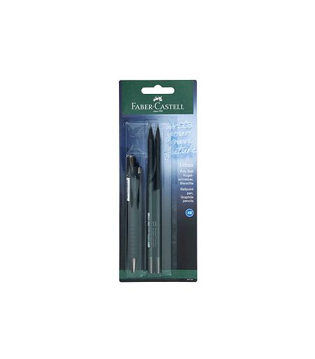 Ausgezeichnete Vorteilspackung für langanhaltenden Schreibspaß: FABER-CASTELL Kugelschreiber-Set Urban schwarz, Schreibfarbe: blau, 1 SetDas FABER-CASTELL Kugelschreiber-Set Urban schwarz, Schreibfarbe: blau, 1 Set überzeugt durch Robustheit, angenehme Schreibeigenschaften und Langlebigkeit. Das Set kombiniert klassische Eleganz mit zeitlosem Design, weshalb das Modell nicht nur funktional ist, sondern auch ein stilvolles Accessoire.Angenehmes Schreibgefühl und schöne OptikDas Gehäuse besteht aus Kunststoff, sodass es äußerst leicht und gleichzeitig stabil ist. Das Schreibgerät kommt in der Farbe schwarz zu Ihnen. Mit der ergonomisch geformten Griffzone ist das Schreiben sehr angenehm und eine verkrampfte Handhaltung wird effektiv verhindert. Aufgrund des Metall-Clips wird das Schreibgerät nicht so leicht vergessen und kann damit an vielen Stellen angesteckt werden.Für garantiert dokumentenechte AufschriebeDas Exemplar schreibt mit einer Strichstärke von 0,7 mm. Mit dieser verhältnismäßig breiten Spitze erzeugt dieses Exemplar einen etwas kräftigeren Strich als Standardmodelle. Die Tinte des Produkts bietet dokumentenechte Ergebnisse, die u.a. Lichtechtheit, Wasserresistenz und Wischfestigkeit aufweisen. Diese Eigenschaft ist vor allem bei wichtigen Dokumenten und Unterschriften ausschlaggebend. Mit der klassischen Schreibfarbe Blau können Sie alles dezent und schlicht halten.Auf der Suche nach etwas Besonderem?Das zeichnet diesen Artikel aus: inkl. 2 Bleistifte.Mine nachfüllen für ein komfortables und langes SchreiberlebnisSollte die Mine tatsächlich einmal aufgebraucht sein, so lässt sich dieses Exemplar im Handumdrehen mit der FABER-CASTELL XB wieder befüllen.Das, was Sie suchen?Bestellen können Sie das FABER-CASTELL Kugelschreiber-Set Urban schwarz, Schreibfarbe: blau, 1 Set schnell und bequem hier bei uns online. ...