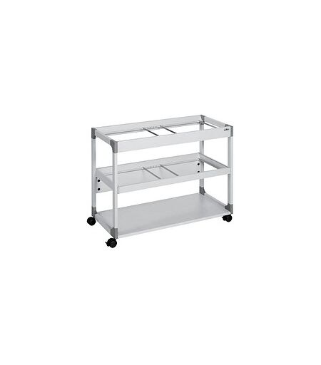 Ordnung auf kleinem Raum mit dem DURABLE Hängemappenwagen grau für bis zu 200 HängemappenDas mühevolle Umhertragen Ihrer Akten und Unterlagen im Büro Vergangenheit ist mit dem DURABLE Hängemappenwagen grau für bis zu 200 Hängemappen Vergangenheit. Ihre Mappen lassen sich einfach einhängen und sind so übersichtlich untergebracht und jederzeit zugänglich.Schneller Zugriff dank mehrbahniger AusführungBis zu 200 Hängemappen finden Ihren Platz in dem DURABLE Hängemappenwagen. Somit sind auch auf kleinem Raum viele Papiere und Unterlagen sicher und komfortabel aufbewahrt. Dank der 2 Bahnen können Sie Ihre Hängemappen übersichtlich lagern. Die ausziehbaren Hängerahmen bieten zusätzlichen Komfort und ermöglichen einen optimalen Zugriff auf Ihre Dokumente.Mit AblageflächenDie Ablageflächen oben und unten können Sie verwenden, um z.B. häufig benötigte Arbeitsutensilien zu deponieren. Mit den 4 leichtgängigen Rollen wird eine unkomplizierte Beweglichkeit von Raum zu Raum gewährleistet. Durch das Arretieren der Rollen kann ein fester Stand des Wagens sichergestellt werden. Das Gesamtgewicht des Exemplars liegt bei 22,0 kg. Die Größe beträgt 87,7 x 43,2 x 71,5 cm (BxTxH).Tolles Design, robuste BeschaffenheitDieses Möbelstück ist in einem edlen grauen Farbton gehalten, der Eleganz und Professionalität ausstrahlt. Durch das stabile Gestell aus Stahl ist das Exemplar sehr robust und langlebig. Machen Sie sich keine Gedanken über unschöne Schrammen oder Flecken – eine unempfindliche Epoxidharzbeschichtung schützt vor bleibenden Schäden z.B. nach Stößen. Sie sorgt auch für eine leichte Reinigung.Steigern Sie jetzt Effizienz und Ordnung am Arbeitsplatz!Das Produkt wird zerlegt angeliefert, aber die Montage ist mühelos. Bestellen Sie das Modell gleich hier in unserem Online-Shop und profitieren Sie schon bald von diesem praktischen Bürohelfer. Die Lieferung des DURABLE Hängemappenwagens grau für bis zu 200 Hängemappen erfolgt inklusive Montagematerial. ...