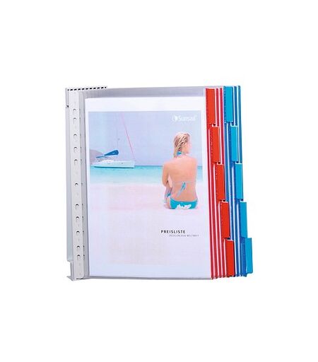 Ordnung leicht gemacht mit dem DURABLE Wand-Sichttafelsystem Wandhalter 569100 DIN A4 farbsortiert mit 10 St. SichttafelnMit dem DURABLE Wand-Sichttafelsystem Wandhalter 569100 DIN A4 farbsortiert mit 10 St. Sichttafeln haben Sie Übersichtlichkeit und Schutz gemeinsam in einem Produkt. Es verfügt über transparente Einsteckfächer für Informationen in Papierform, die beliebig abgelegt und erweitert werden können. So können Sie besonders schnell auf Ihre Unterlagen zugreifen und haben alles Wichtige im Blick.10 Tafeln inklusiveWenn Sie Ihre Informationen an der Wand benötigen, dann ist das DURABLE Wand-Sichttafelsystem Wandhalter genau der richtige Artikel für Sie. Einfach an der gewünschten Stelle befestigen und es kann los gehen. Um direkt loslegen und Ihre Dokumente ablegen zu können, bekommen Sie mit dem DURABLE Wand-Sichttafelsystem Wandhalter gleich 10 Sichttafeln mitgeliefert. Falls Ihnen diese nicht mehr ausreichen, dann können Sie diese auch ganz einfach erweitern.Daraus besteht der ArtikelEine farbliche Sortierung der Unterlagen macht immer Sinn, wenn Sie nach mehreren Themen strukturieren möchten. Mit den 10 mitgelieferten Tafeln in den den Farben rot und blau sind Sie dafür gut aufgestellt. Ihre Unterlagen werden dank dem widerstandsfähigen Tafelmaterial Hartfolie über längere Zeit vor Knitterfalten oder Flecken geschützt. Einen festen Halt der Tafeln gewährleistet das stabile Gestell aus Metall. Der robuste Rahmen aus Kunststoff schützt die eingesteckten Blätter zusätzlich.Was ist besonders?Auf diese Besonderheiten können Sie sich freuen: Sichttafeln: Universallochung für Ordner und Ringbücher.Passt das Format?Das gängigste Papierformat ist DIN A4. Daher ist es überaus praktisch, dass Sie die Tafeln für alles im DIN A4-Format verwenden können.Überzeugt?Sichttafeln gibt es bei Bestellung des DURABLE Wand-Sichttafelsystems Wandhalter 569100 DIN A4 farbsortiert mit 10 St. Sichttafeln mit dazu. ...