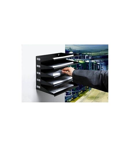 Die DURABLE Sortierstation schwarz mit 5 Fächer garantiert Ordnung in Ihrem BüroMit der DURABLE Sortierstation schwarz mit 5 Fächer setzen Sie auf Qualität und Funktionalität. Dank des stabilen Aufbaus und der durchdachten Anordnung bietet sie Ihnen eine zuverlässige Lösung zur Organisation Ihrer Unterlagen. So optimieren Sie Ihren Arbeitsplatz und Ihre Abläufe! Beim Kauf muss selbstverständlich auch das Format zu Ihrem Verwendungszweck passen. Mit Papieren bis zum DIN A4 quer-Format liegen Sie hier genau richtig.Mit 5 Ebenen5 Fächer verteilt auf 5 Etagen bieten ausreichend Platz für alle Ihre Unterlagen oder Büromaterialien. Die Fachhöhe liegt bei 7,5 cm. Die Maße der Station betragen im Gesamten 36,0 cm x 33,0 cm x 25,0 cm (BxHxT).Auch Montage an der Wand möglichWer auf seinem Tisch oder im Büro wenig Platz findet, der kann sich auf die Möglichkeit der Wandmontage freuen.Alles über das MaterialPflegeleicht und robust ist das Exemplar dank seiner Beschaffenheit aus pulverbeschichtetem Stahl.Jetzt das Büro effizienter gestalten!Mit nur wenigen Klicks erhalten Sie die DURABLE Sortierstation schwarz mit 5 Fächer hier im Online-Shop – sie wird Ihnen inklusive seitlichem Etikettenfenster geliefert. ...