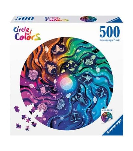 Die Ravensburger Circle of Color Puzzles mit 500 Teilen und extra Poster sind eine ganz neue Herausforderung, denn es ist Puzzeln im kreisrunden Format gefragt. Entspannung in Premium Qualität für Puzzle Neulinge, erfahrene Puzzleprofis oder einfach zur Abwechslung vom stressigen Alltag für Jedermann. Die Bunten Farben, welche wie im Regenbogen angeordnet sind, machen das fröhliche Puzzleerlebnis einfacher. So gelangt man Stück für Stück, Farbnuance für Farbnuance, zum fertigen Motiv.Lust auf eine neue Runde Puzzles? Lust auf ein Potpourri an kräftigen Farben? Lust, auf eine neue Form? Dann geht es mit den Circle of Color Puzzles mit 500 Teilen rund und bunt ans Werk!Die Ravensburger Circle of Color Puzzles mit 500 Teilen und extra Poster sind eine tolle Abwechslung sowie eine ganz neue Herausforderung, denn es ist Puzzeln im kreisrunden Format gefragt. Hier gibt es Entspannung für Zwischendurch in Premium Qualität. Für Puzzle Neulinge, erfahrene Puzzleprofis oder einfach zur Abwechslung vom stressigen Alltag für Jedermann. Die Bunten Farben, welche wie im Regenbogen angeordnet sind, machen das fröhliche Puzzleerlebnis einfacher. So gelangt man Stück für Stück, Farbnuance für Farbnuance zum fertigen Motiv. Das kommt auch super, an einer Wand aufgehangen, zur Geltung und man hat noch länger Freude daran. ...