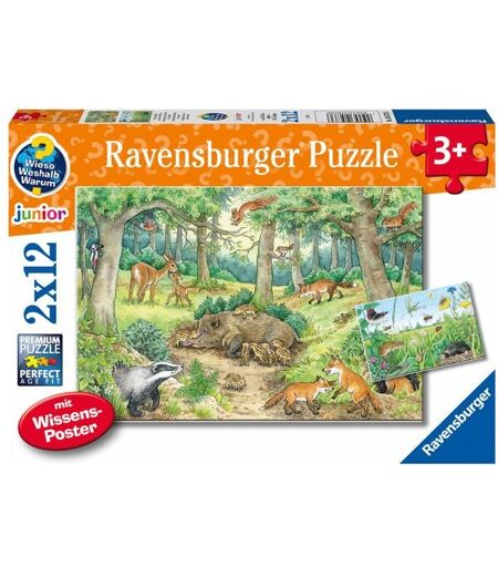Ravensburger Verlag GmbH Kinderpuzzle 2x12 Teile - Wieso? Weshalb? Warum? Tiere im Wald und auf der Wiese
