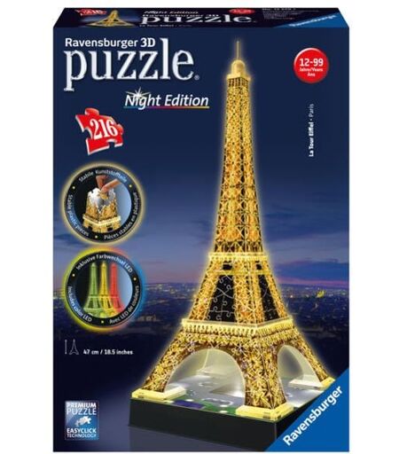 Ravensburger Verlag GmbH Eiffelturm, 3D-Puzzles Night Edition