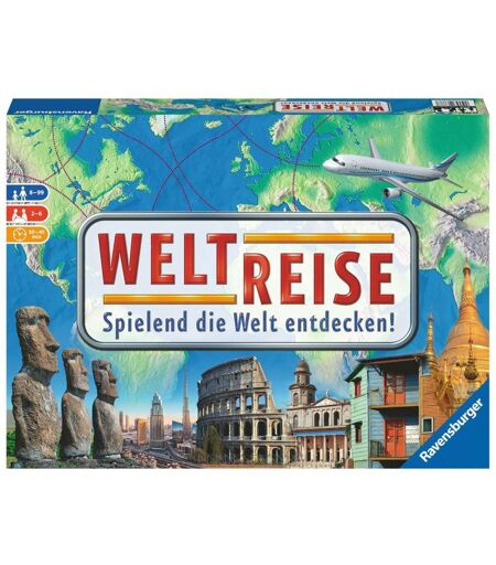 Im Familienspiel „Weltreise“ besuchen die Spieler die interessantesten Orte der Welt. Zufällig verteilte Städtekarten bestimmen jede Partie eine neue, für jeden Spieler unterschiedliche Reiseroute. Von Tokio über London nach New York – oder von Rio de Janeiro nach Kapstadt und Hongkong? Auf jeden Fall heißt es: clever planen. Die große Tour fordert Taktik und etwas Würfelglück! 173 lohnende Reiseziele warten auf die Spieler, darunter Pflichtreiseziele und freie Reiseziele, die zusätzliche Punkte bringen. Unterwegs ist es möglich, die Mitspieler mit Aktionskarten von ihrer Reiseroute abzubringen und zu sich einzuladen. Es ist auch möglich, seine eigene Route abkürzen, indem man einen anderen Spieler besucht oder ein ungünstig gelegenes Ziel einfach austauscht. Gewonnen hat die „Weltreise“, wer als Erster nach allen Reisezielen wieder am Ausgangsort angekommen ist und die meisten Punkte gesammelt hat. Und wer während des Spiels die Infotexte auf den Städtekarten liest, bereist nicht nur die Welt, sondern lernt auch jede Menge Wissenswertes über San Francisco, Montreal, Seoul und Co. Jede Partie nimmt die Spieler mit auf eine neue, spannende Weltreise, bei der es jede Menge zu entdecken gibt! ...