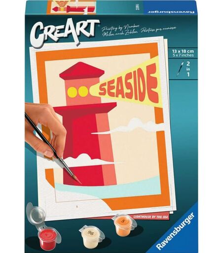 CreArt - das ist Malen nach Zahlen für Jugendliche und Erwachsene aus dem Hause Ravensburger. Jedes Set enthält alles, was zum Malen benötigt wird. Es ist kein Mischen der Farben notwendig. Motivlinien sind aufgedruckt und können einfach mit den Acrylfarben ausgemalt werden. Das ermöglicht schnelle Erfolgserlebnisse und lässt einen dekorativen Wandschmuck entstehen. Hinzu kommt die tolle Auswahl an Motiven in verschiedenen Größen. Mit diesem Set entsteht ein stilvolles Wandbild eines Leuchtturms mit leuchtenden Farben. ...
