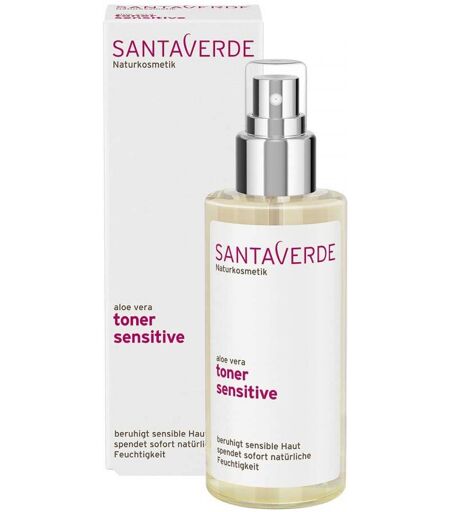 Anwendungsgebiet von Santaverde Aloe Vera Toner sensitive SpraySantaverde Aloe Vera Toner sensitive Spray wirkt beruhigend, hydratisierend und intensiviert die Wirkung der nachfolgenden Pflege. Reiner Aloe Vera Saft spendet sofort natürliche Feuchtigkeit. Zart duftendes Rosenblütenhydrolat beruhigt sensible Haut und lindert Rötungen sowie Irritationen. Hinterlässt die Haut harmonisiert und erfrischt. Besonders geeignet für sensible Haut.
