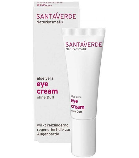 Anwendungsgebiet von Santaverde Aloe Vera Augencreme ohne DuftSantaverde Aloe Vera Augencreme ohne Duft pflegt die empfindliche Augenpartie mit reizlindernden und schützenden Wirkstoffen. Reiner Aloe Vera Saft versorgt die Haut intensiv und nachhaltig mit Feuchtigkeit. Beruhigende Extrakte aus Augentrost und Tigergras wirken abschwellend und lindern Reizungen und Irritationen. Öle aus Traubenkernen und Sanddornbeeren regenerieren die zarte Augenpartie und bewahren ihre Elastizität. Die leichte Creme hinterlässt die sensible Haut beruhigt, gepflegt und entspannt.