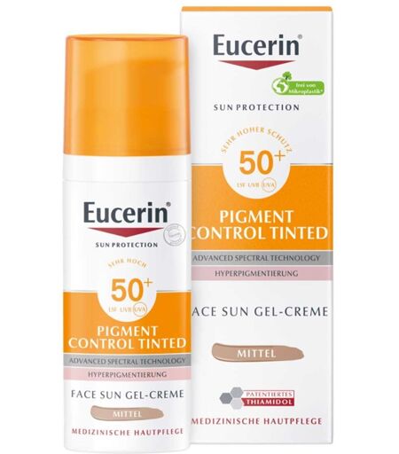 Anwendungsgebiet von Eucerin Sun Fluid Pigment Control Lsf 50+ MittelEucerin Sun Fluid Pigment Control Lsf 50+ Mittel ist ein getönter Sonnenschutz für den täglichen Gebrauch, der sofort einen ausgeglichenen Teint verleiht und vor Hyperpigmentierung schützt, die durch die Sonne hervorgerufen wird.