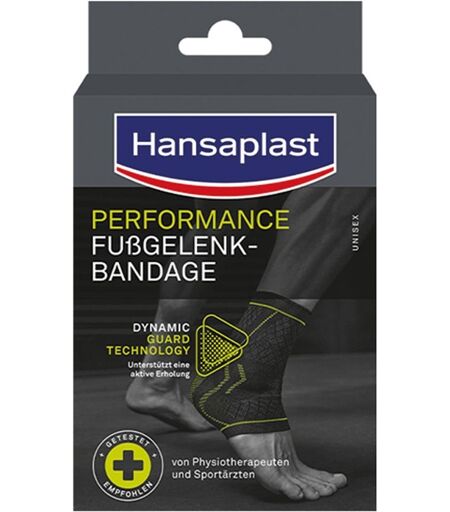 Anwendungsgebiet von Hansaplast Sport Fußgelenk-Bandage Gr S/MSchmerzende oder schwache Fußgelenke können viele Ursachen haben: Verstauchungen, chronische Instabilität des Knöchels oder die klassische Überbelastung können schnell Probleme und Verletzungen im Bereich der Fußgelenke nach sich ziehen. Um genau dagegen anzugehen, entlastet und stabilisiert die Hansaplast Sport Fußgelenkbandage die Fußgelenke und trägt durch Kompression und Stützung dazu bei, Schmerzen zu lindern. Neuen Verletzungen kann mit der Sprunggelenkbandage vorgebeugt werden.
