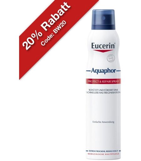 Anwendungsgebiet von Eucerin Aquaphor Protect & Repair SprayDas Eucerin Aquaphor Protect & Repair Spray pflegt extrem trockene, rissige und irritierte Haut gepflegt und eine unterstützt die Hautregeneration.