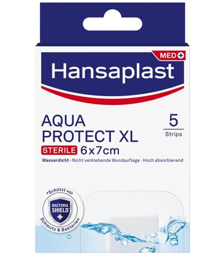 Hansaplast Aqua Protect XL und XXL Pflaster sind wasserdichte sterile Wundverbände zur Versorgung mittelgroßer bis großer Wunden, wie sie im Alltag entstehen können. Sie sind auch für die Wundversorgung nach kleineren operativen Eingriffen geeignet.