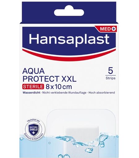 Hansaplast Aqua Protect XL und XXL Pflaster sind wasserdichte sterile Wundverbände zur Versorgung mittelgroßer bis großer Wunden, wie sie im Alltag entstehen können. Sie sind auch für die Wundversorgung nach kleineren operativen Eingriffen geeignet.