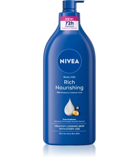 Nivea Body Milk, 625 ml, Bodylotion für Damen, Die Bodylotion Nivea Body Milk spendet Ihrer Haut die notwendige Feuchtigkeit und macht sie samtweich. Eigenschaften: pflegt und regeneriert intensiv schenkt der Haut langzeitige Feuchtigkeit und Geschmeidigkeit gibt der Haut ihre Elastizität zurück leicht aufzutragen, zieht schnell ein Anwendung: Die notwendige Menge am besten nach dem Baden oder Duschen auf die saubere Haut auftragen. Gut einmassieren. ...