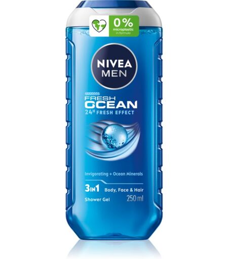 NIVEA MEN Fresh Ocean, 250 ml, Duschgels und Seifen für Herren, Das Duschbad NIVEA MEN Fresh Ocean macht die notwendige tagtägliche Körperpflege zu einem einzigartigen erfrischenden Erlebnis. Eigenschaften: reinigt die Haut und entfernt Verunreinigungen verleiht der Haut nach der Anwendung ein Gefühl von Frische und Energie vitalisiert die Haut duftet angenehm Anwendung: Während des Bades oder Duschens anwenden, auf die Haut auftragen und dann mit warmem Wasser abspülen. ...